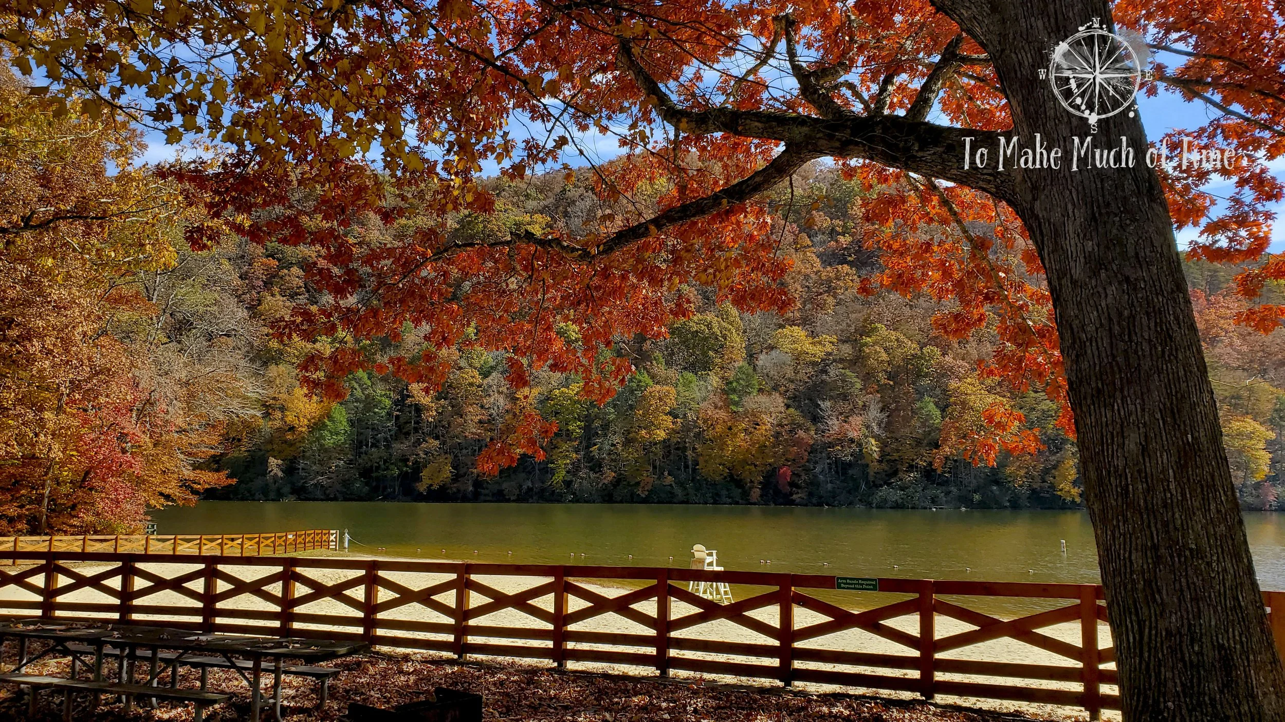 With Douthat State Park and Hungry Mother State Park both in the running, we finally decided on Hungry Mother for the number and length of trails and the fact that smack dab in the middle is a large lake. Late October in Virginia can still bring beautiful fall colors, so we decided to cross our fingers and hope for fall leaves set against the lake backdrop, and boy did we luck out in that toss of the dice!