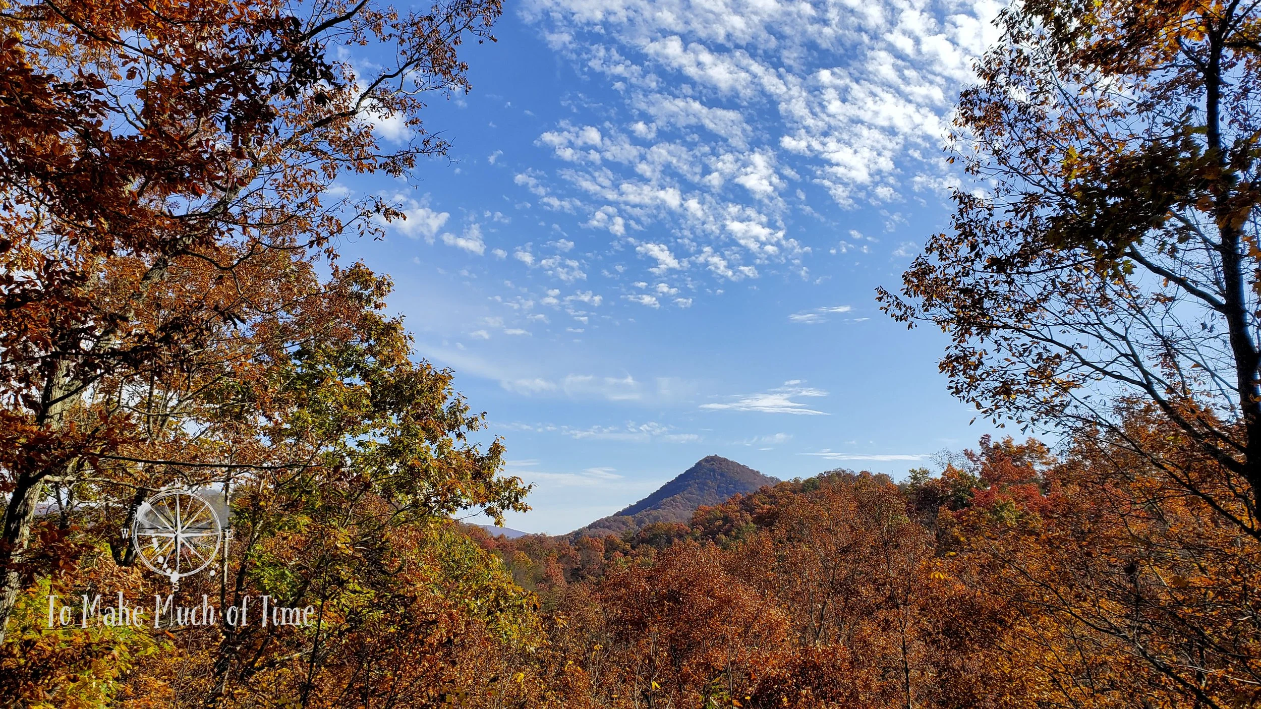 We really enjoyed this trail and the beautiful coves of trees. On one side of the mountain on the way up, all trees in our view were toting yellow leaves. As soon as we curved around a mountain bend, the other side held trees of orange and red hues. From atop the ridge, we had views of surrounding ridgelines and one in particular stood out as being particularly tall and more steeply angled than many of Virginia’s undulating hilltops.